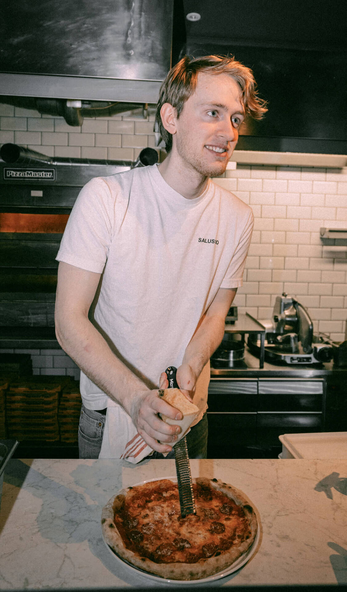 I min utbildning på pizzaakademin ingick även två månaders praktik som jag hade på en restaurang i italienska byn Saluzzo. Där blev jag kvar ett halvår efter praktiken och fick en stabil grund och djupare kunskap i pizzabakandet. Jag fick lära mig mycket om hur maten är en samlingsplats för att träffa vänner och familj, och att varje tallrik jag serverar är gjord med hjärtat.